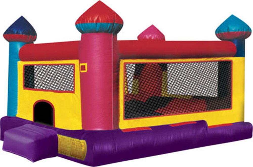 Our Castle Bounce is perfect for your king and queen. The bright primary colors of our bounce fit any occasion. 14' L x 13' W x 16' H Appropriate for all ages Price includes delivery / setup / pickup