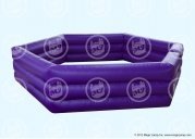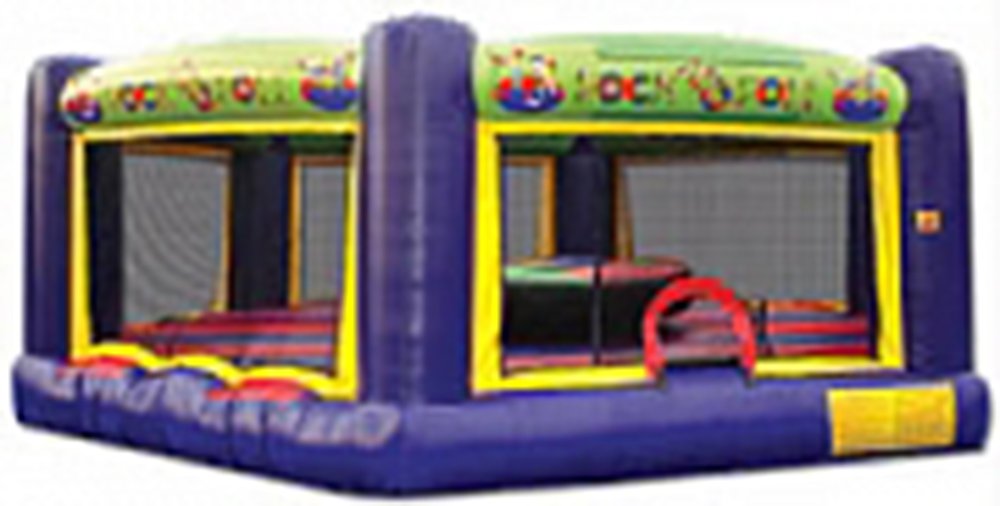 Duke it out in our Oversize Joust / Boxing Arena. Joust poles and oversize boxing gloves are included. An inflated pedestal protrudes from the center of the unit. Two participants stand on the pedestal and attempt to box or joust their opponent off. It has a hexagon shape. Headgear provided. 24' L x 22' W x 9' H Appropriate for ages 7 thru adult Price includes delivery / setup / pickup