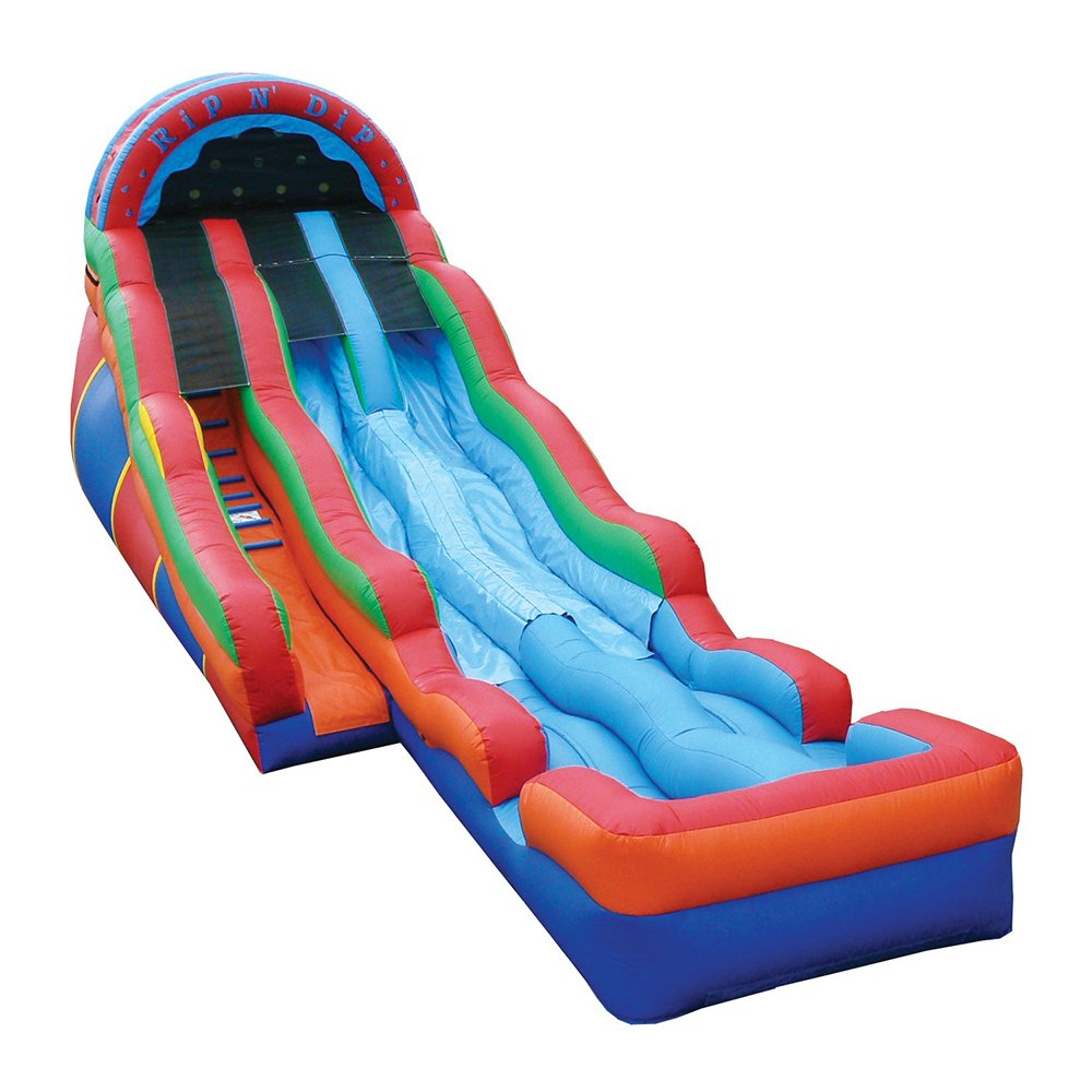 Our 2 Lane Rip n Dip will blow your mind. Also known as the Tidal Wave of Thrills, it has two separate sliding lanes with 2 humps in each lane. What a trip! Since we got it approved in Pennsylvania, we are the first company to offer it to the public in this state. 38' L x 11' W x 17' H Appropriate for all ages Customer must provide garden hose Price includes delivery / setup / pickup