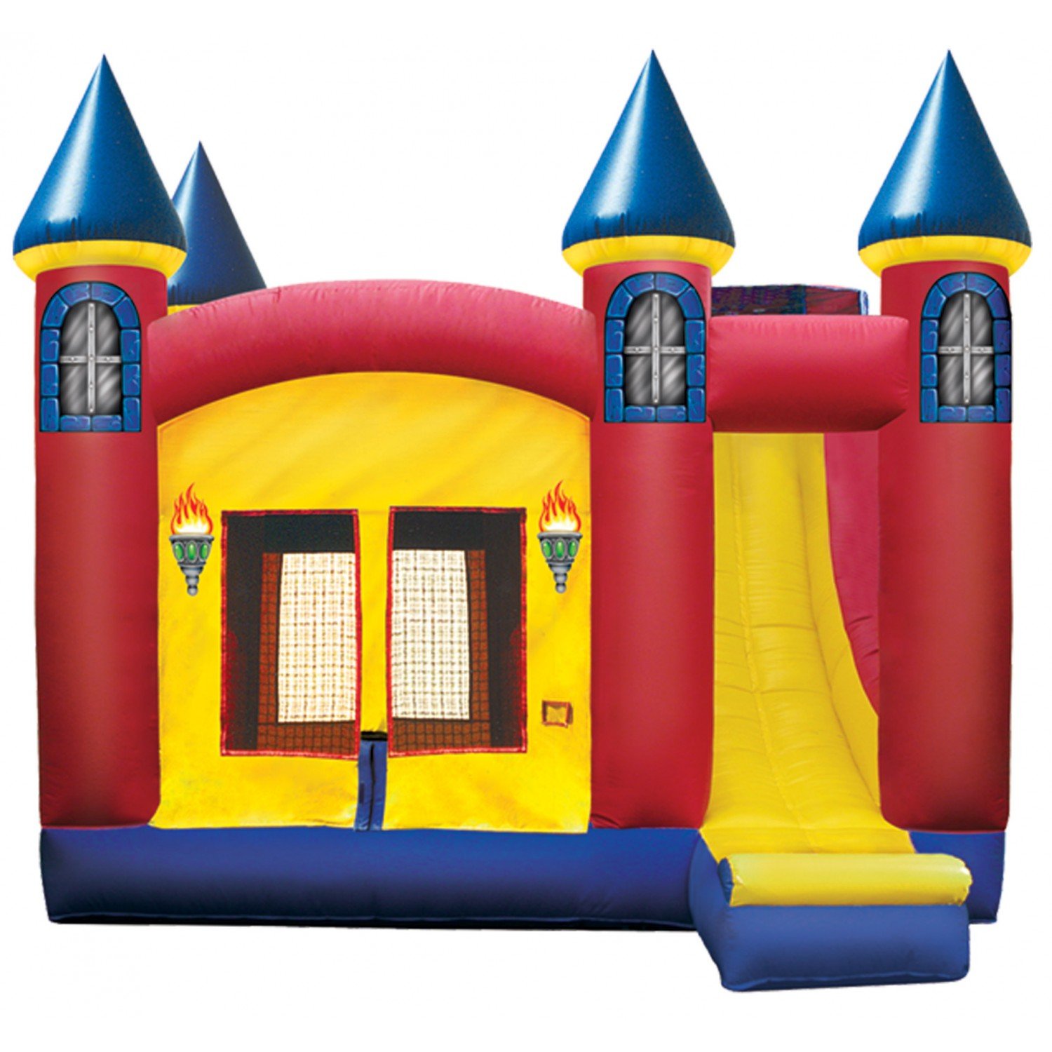 Our 4 in 1 Excalibur Combo is a brightly colored castle theme unit. It includes 140 square feet of bounce space, a basketball hoop, climb, and a 13-ft. slide with a 50-degree sliding angle. 15' L x 15' W x 17' H Appropriate for all ages Price includes delivery / setup / pickup