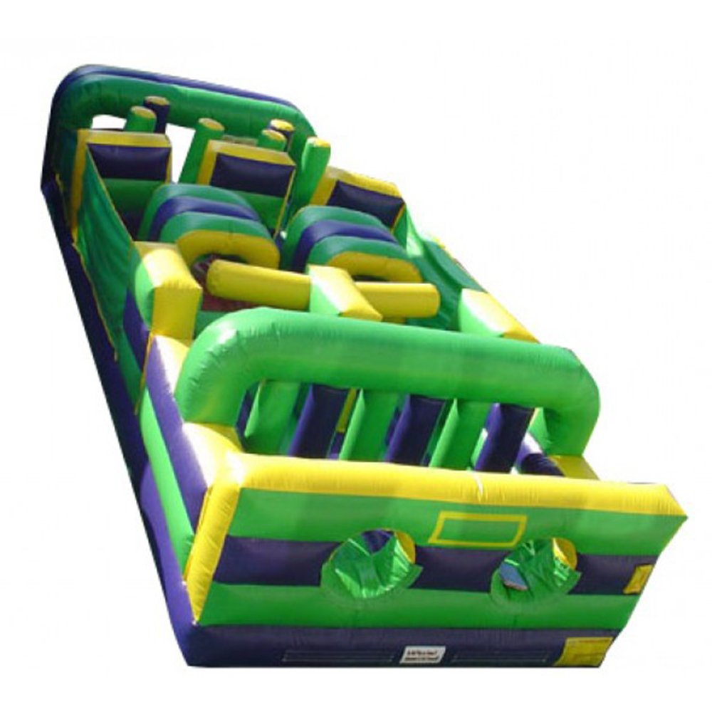 Our 40' Nuclear Obstacle Course will have everyone releasing energy. It has numerous challenging obstacles including jump through openings, pop-ups, log jams, squeeze walls, crawl tubes, rockwall, and slide. Great for any backyard event, company picnic, and corporate event. New for 2018. 40' L x 11' W x 10' H Appropriate for all ages Price includes delivery / setup / pickup