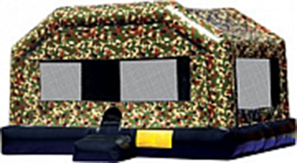 Camo is in this season! Our extra-large camouflage bounce gives an extra amount of bouncing fun. This super spacious bounce house provides more than 300 square feet of pure bounce, plenty of room for participants to jump their way for hours on end. Up to 10 participants at a time. Camo Chic for the girls, Camo Cool for the boys. 16' L x 20' W x 12' H Appropriate for all ages Price includes delivery / setup / pickup